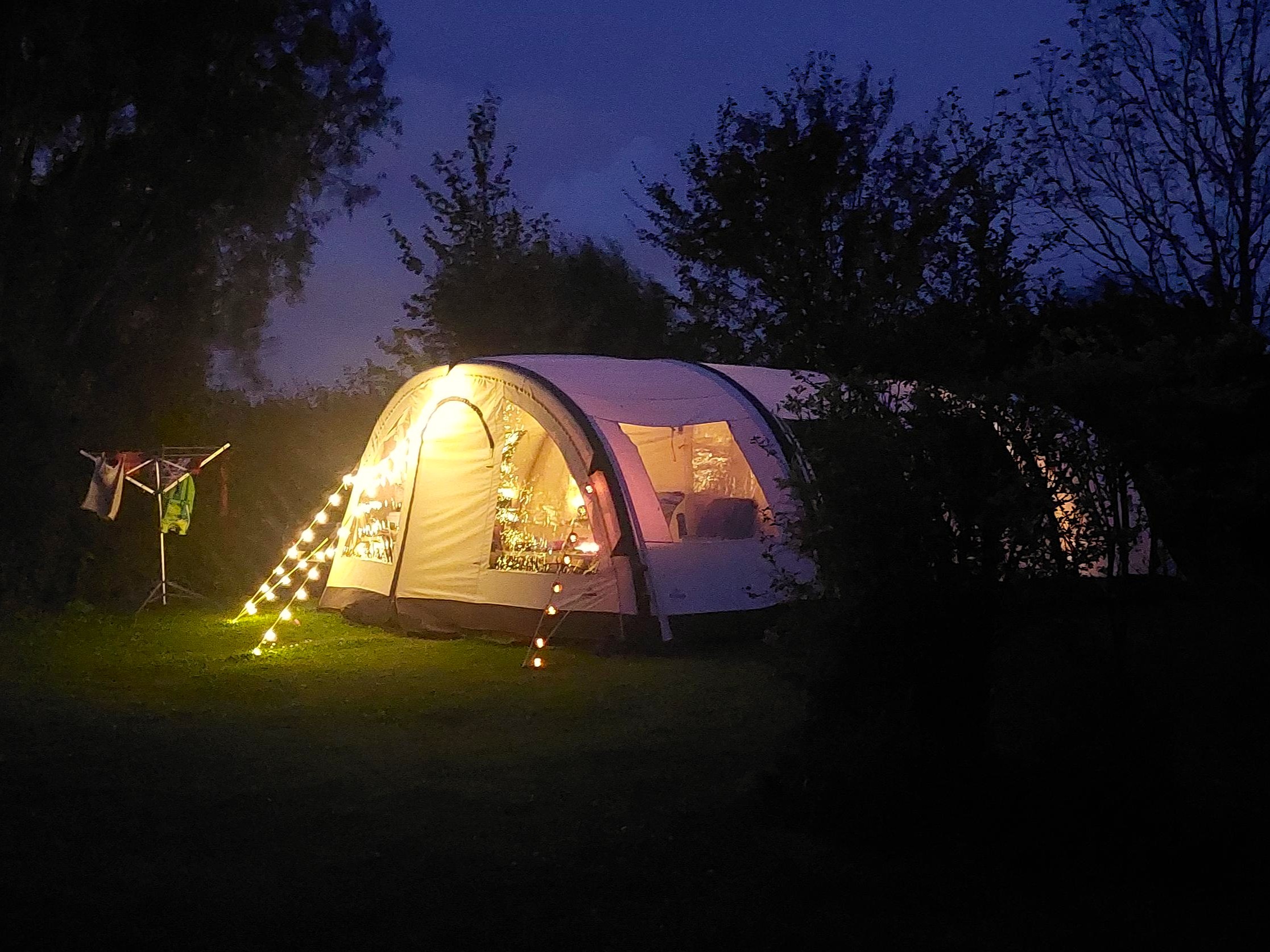 Op onze minicamping ben je met een grote tent van harte welkom. Naast caravans, vouwwagens en kleine tentjes is er ook volop ruimte voor grotere familietenten. Onze wens is dat alle gasten kunnen genieten van een ruime kampeerplaats met een mooie, groene grasmat.